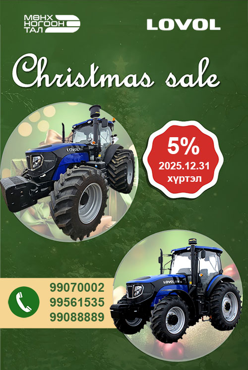 БНХАУ-ын улсын үйлдвэр LOVOL брэндийн Монгол дахь албан ёсны дистрибьютер "Мөнх ногоон тал" ХХК нь 2026 онд трактор худалдан авах захиалга өгч буй үйлчлүүлэгчдэдээ зориулсан 24 сая төгрөг хүртэлх ШИНЭ ЖИЛИЙН УРАМШУУЛАЛ зарлаж байна. 25-300 морины хүчтэй 2025-2026 оны 4-р үеийн кабинтай цоо шинэ тракторуудаа төлбөрийн таатай нөхцөлөөр авах боломжтойг дуулгахад таатай байна. Хямдрал 2025.12.31 хүртэл үргэлжлэх тул амжиж захиалгаа өгөхийг урьж байна.